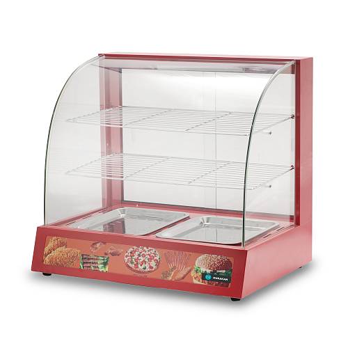 SOE KLAASKAPP HURAKAN HKN-WD2 asetatakse lauale, et valmistatud roogi soojana esitleda. Sellised seadmed on päevakohased toitlustusettevõtete jaoks, kus enne lauale andmist on vajalik toitu lühiajaliselt kuumana hoida. See klaaskapi mudel on varustatud kahe võreriiuliga ja klaaskapi alumisel küljel paikneb kaks alust. Klaaskappi paigutatud toitude ligitõmbavamaks muutmiseks on olemas valgustid. Soe klaaskapp on valmistatud värvitud terasest. Seadme välismõõdud on 660 x 466 x 610 mm. Selle klaaskapi töötemperatuurivahemik on 30-80 °C. Aparaadi poolt tarbitav võimsus – 0,84 kW. Toitepinge on 220 V.